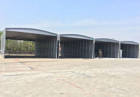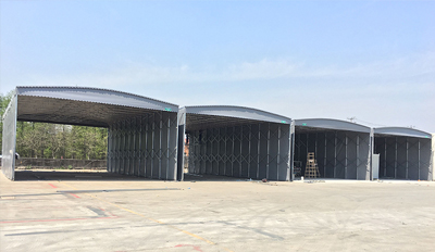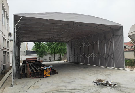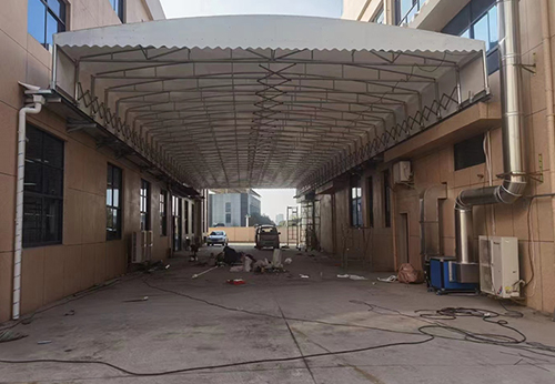 清遠電動推拉棚廠家制作廠房旁搭建活動雨蓬